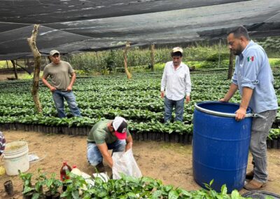 Para el cuidado de su café, realizan actividades de nutrición que están permitidos en las normas orgánicas y están establecidas en el manual orgánico de la cooperativa que se basan en prácticas de conservación y cuidado del medio ambiente. Se realizan bio fertilizantes como violes y composta para brindarle herramientas y poder mantener porcentajes de nutrición idóneos en las parcelas. También, procuran mantener varios estratos de sombra para mantener un clima idóneo dentro de la parcela que permita mantener una biodiversidad variada, así mismo se sugiere que el chapeo tenga una altura aproximada de 15 cm al ras de suelo, para evitar que los nutrientes puedan deslavarse