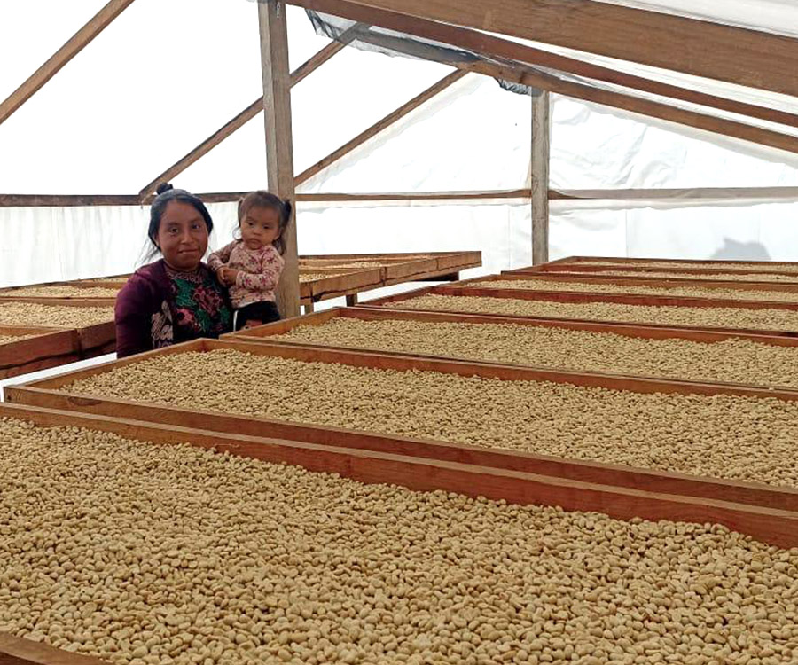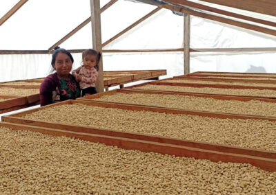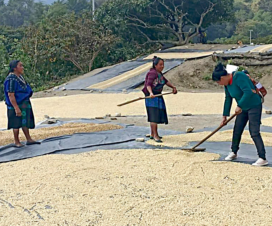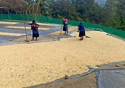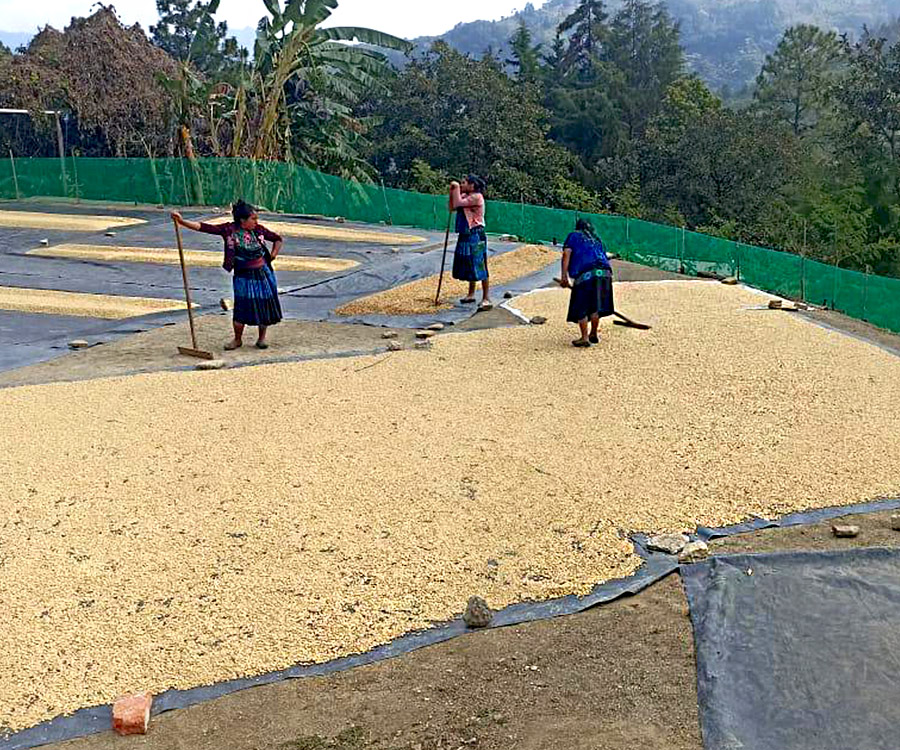 El secado posterior, lo realizan en patios de cemento y/o techos/lozas, plásticos, secadoras solares, todo esto buscando reducir la humedad hasta un 11 %. Para ello realizan el movimiento de los granos de manera constante de manera que sequen uniformemente. Una vez seco el café, se almacena en sacos de yute, buscando espacios ventilados y limpios y usando tarimas de madera para no dejarlo directo al piso.